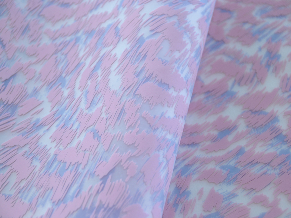 Stampa con alternanza di colori trasparenti e coprenti inglobata nel nostro GUM, impreziosita da una finitura satinata.