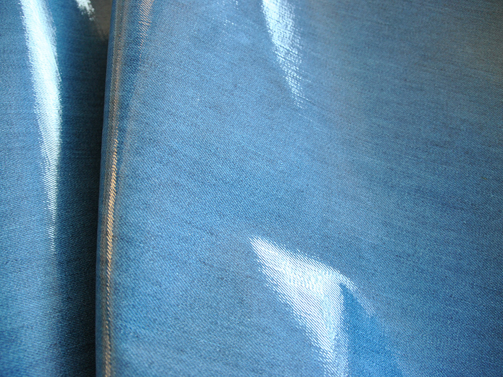 Tessuto accoppiato a un film leggero di poliuretano, applicazione monolato. Finitura lucida.